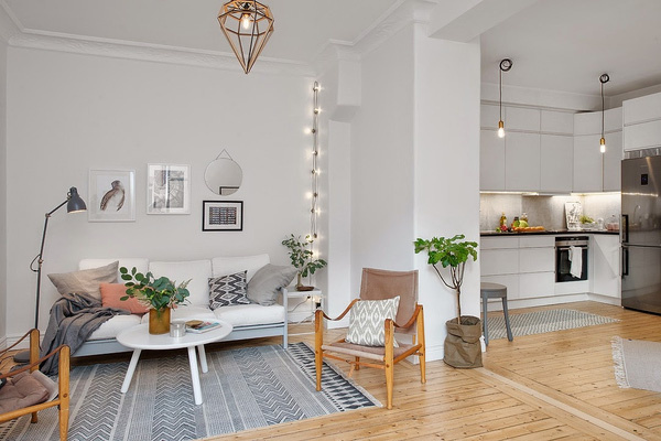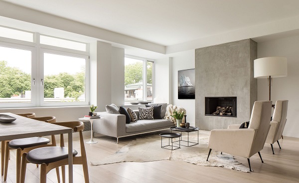 Những thiết kế này thường có đường nét đơn giản, ít họa tiết để mang đến không gian tươi mới, gọn gàng và ngăn nắp. Những món đồ nội thất với ván công nghiệp như sofa, bàn trà, kệ tivi, tủ bếp, tủ đồ… được bố trí rất khoa học và hợp lý để căn hộ của bạn trông rộng rãi và thoáng mát hơn.